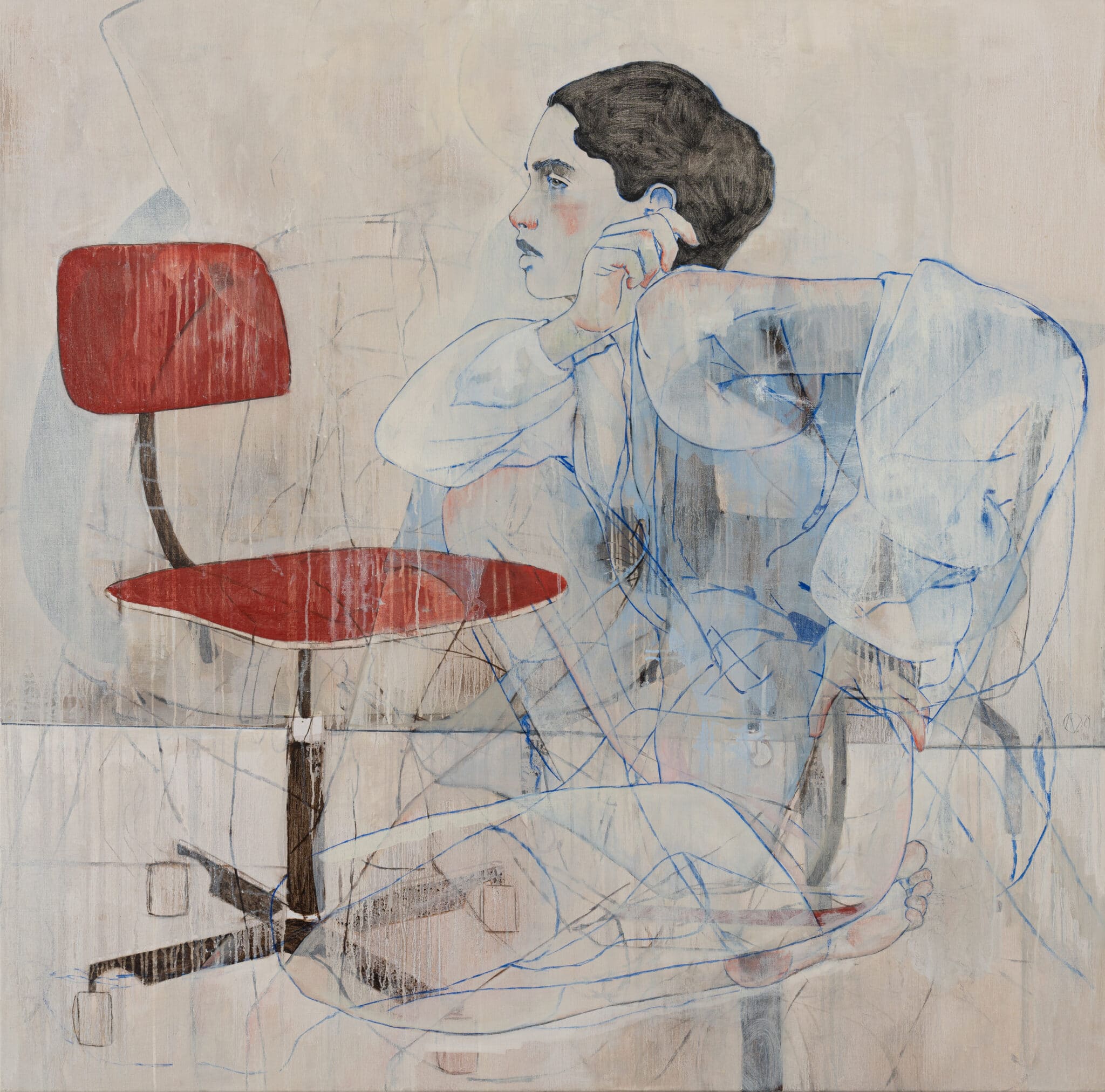André Lundquist (b. 1972) is a Danish artist who is inspired by literature and moments from his own life. He is fascinated with people and their relations with nature and the world, and how everything is connected. His paintings are made by building up several layers, and the compositions often take form in unexpected ways. He works his way around the canvas and the direction changes as he works on each layer, as he adds new motifs, making each layer weave into each other. The result is a complex surface consisting of layers of stories.